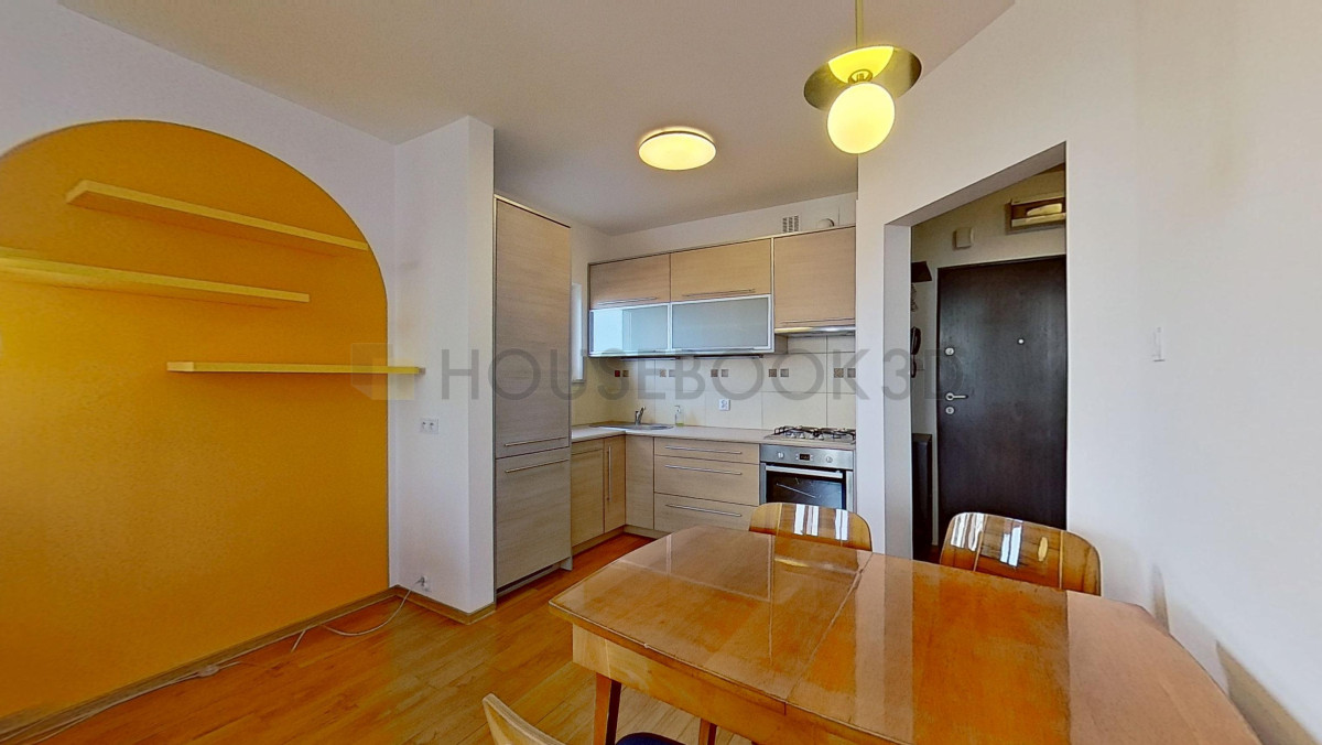 Do dyspozycji najemcy pozostają również meble, w tym m.in. łóżko, narożnik z funkcją spania, stół z krzesłami oraz szafy.