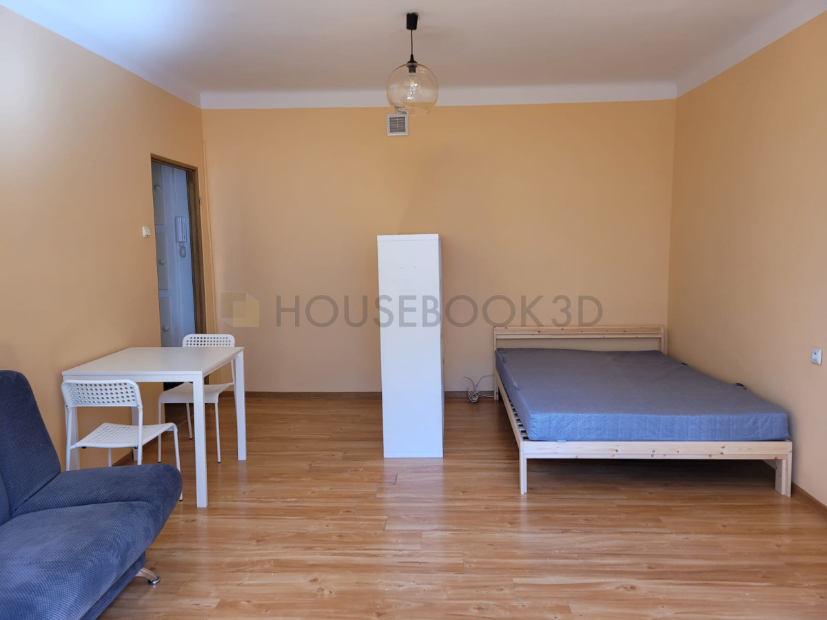 Mieszkanie składa się z dużego, dobrze doświetlonego pokoju, który pełni funkcję salonu i sypialni. Dzięki dużemu oknu wnętrze jest jasne przez cały dzień, co sprawia, że przestrzeń jest wyjątkowo przyjemna do codziennego użytku.