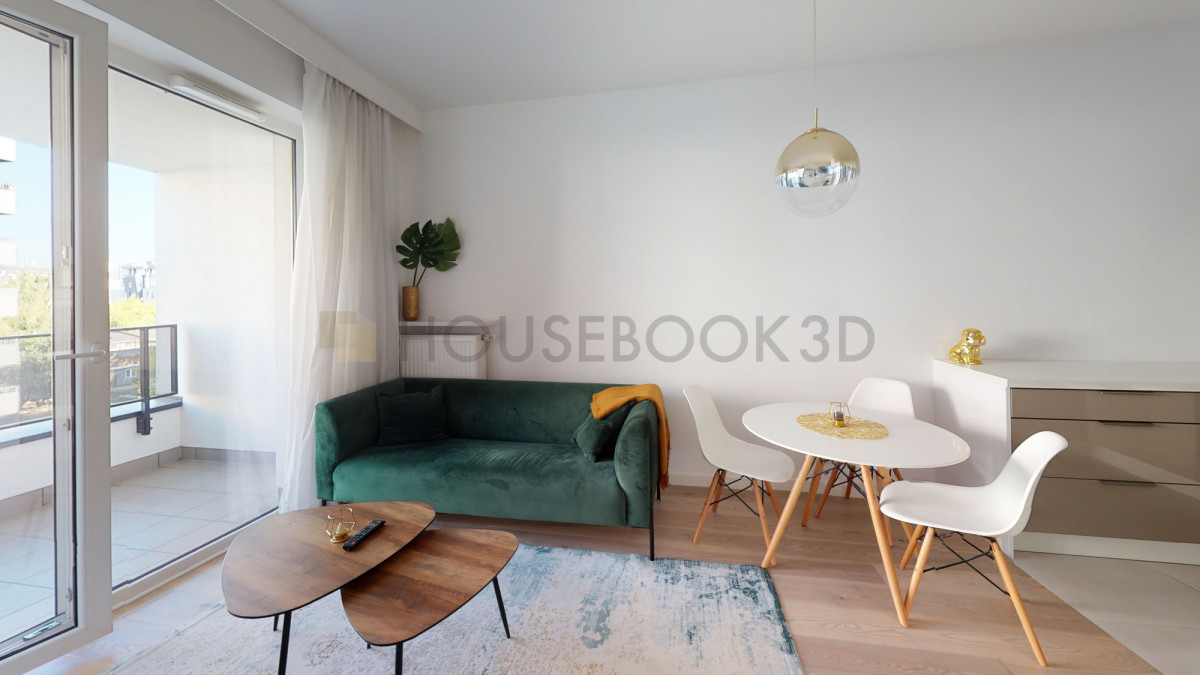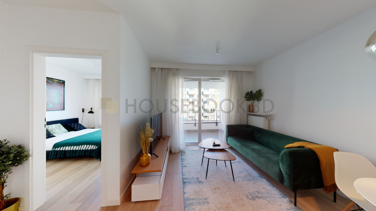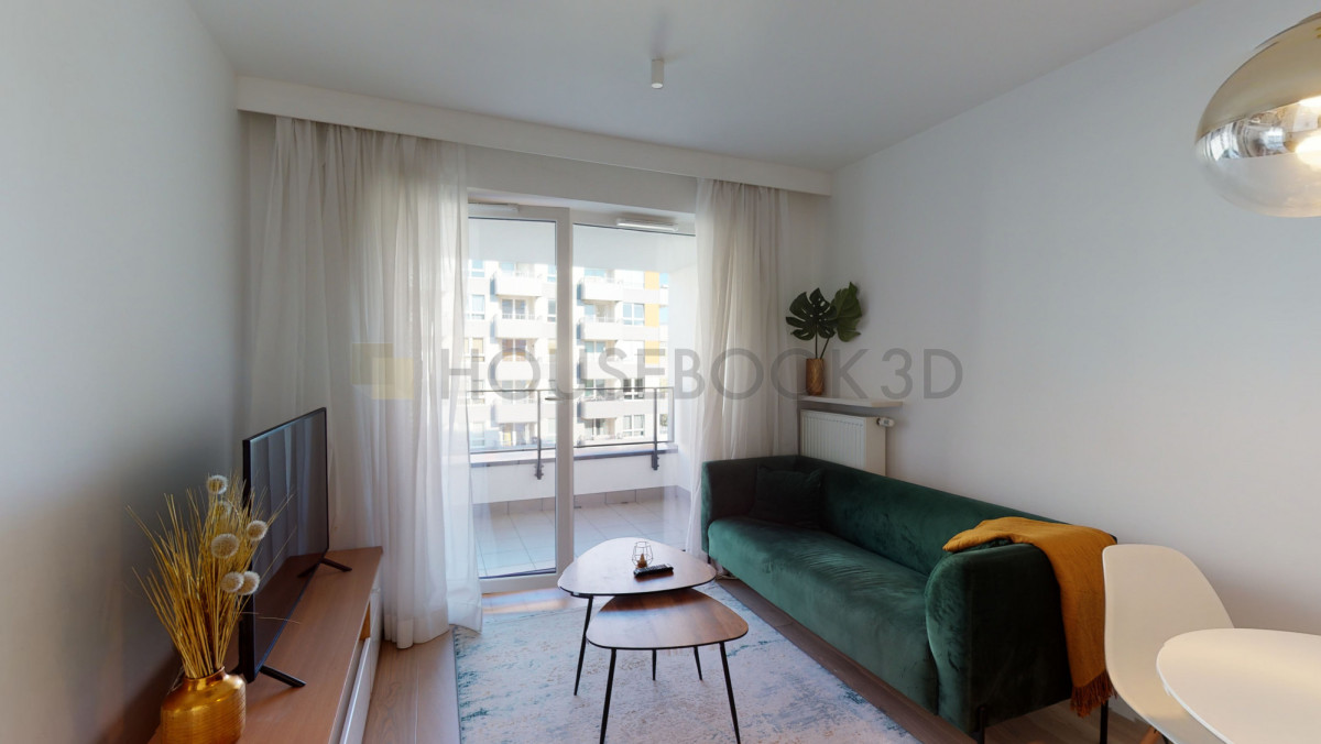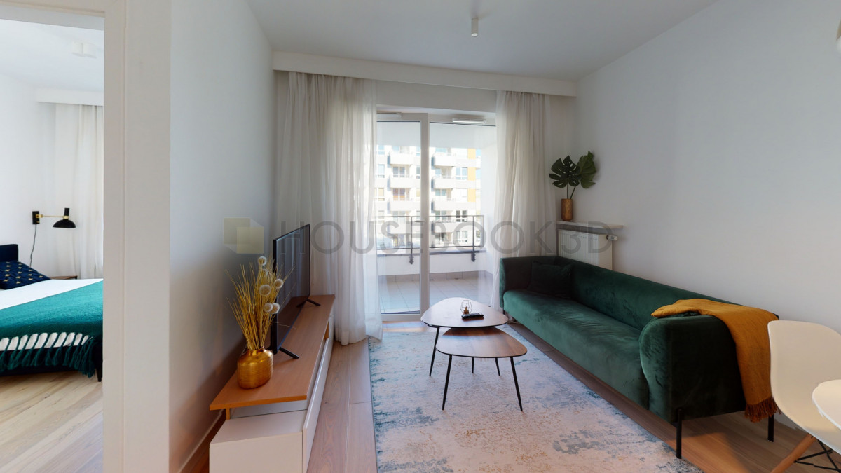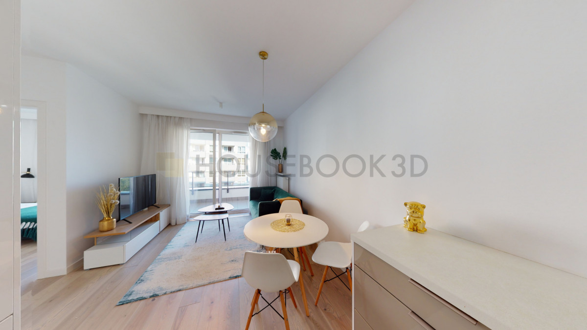 Układ i wyposażenie:- Salon z wyjściem na balkon, wyposażony również w stół jadalniany i telewizor.