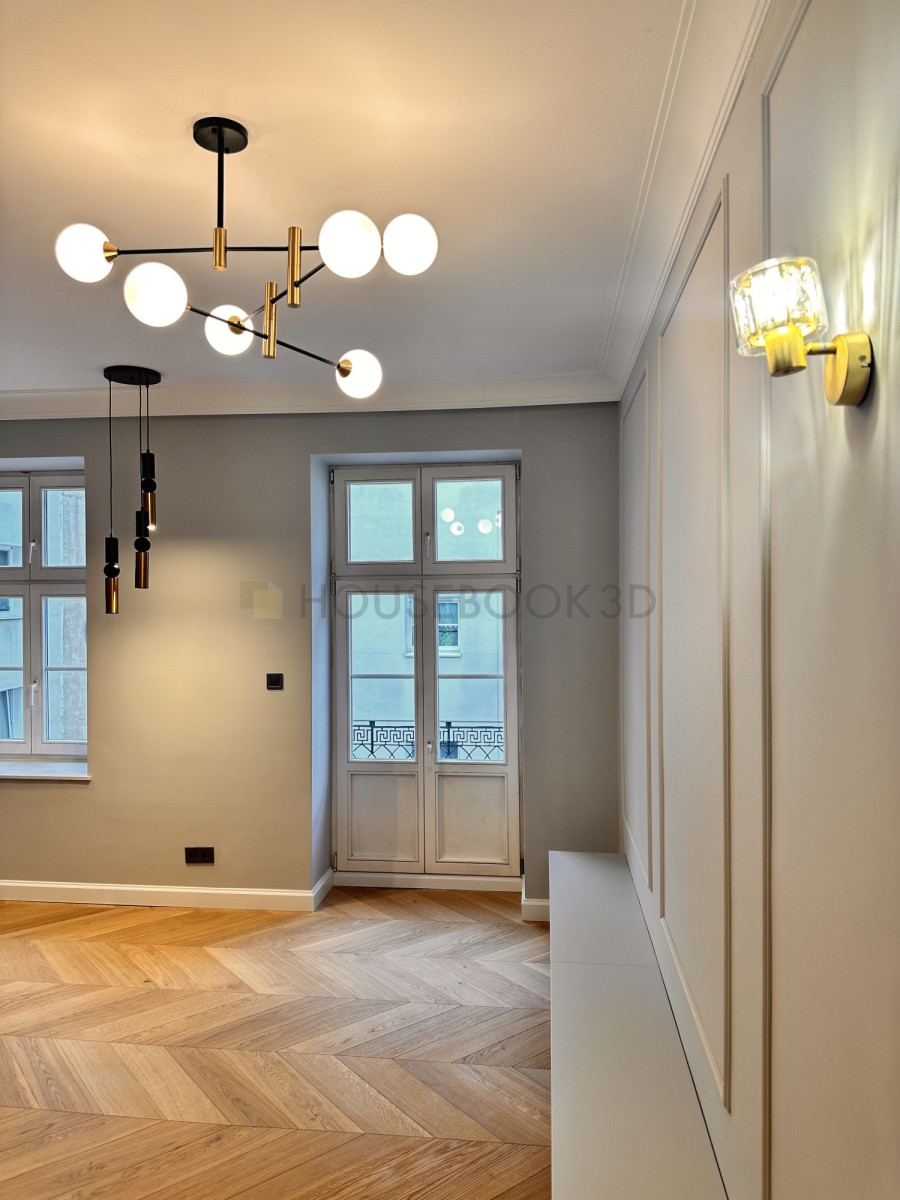 - zachowane klasyczne detale architektoniczne - wysokie sufity, sztukateria, duże okna.