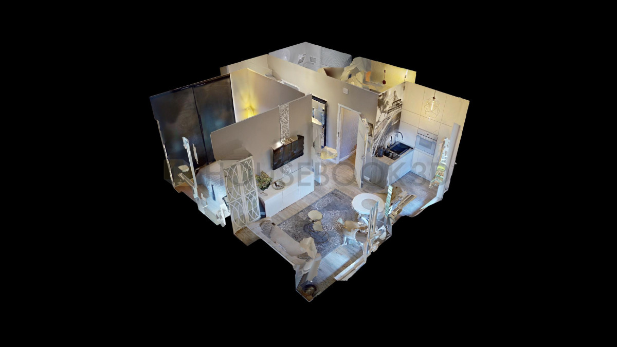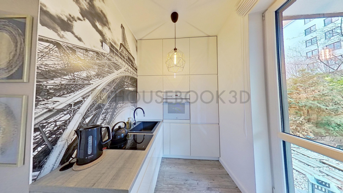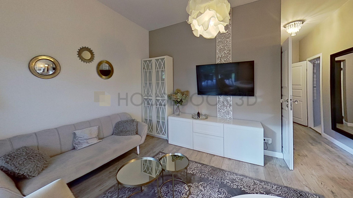 W salonie znajduje się sofa, stół z krzesłami, TV, regał i komoda. Aneks kuchenny wyposażony w piekarnik, zmywarkę, lodówkę i płytę grzewczą (na wyposażeniu mieszkania nowy odkurzacz).
