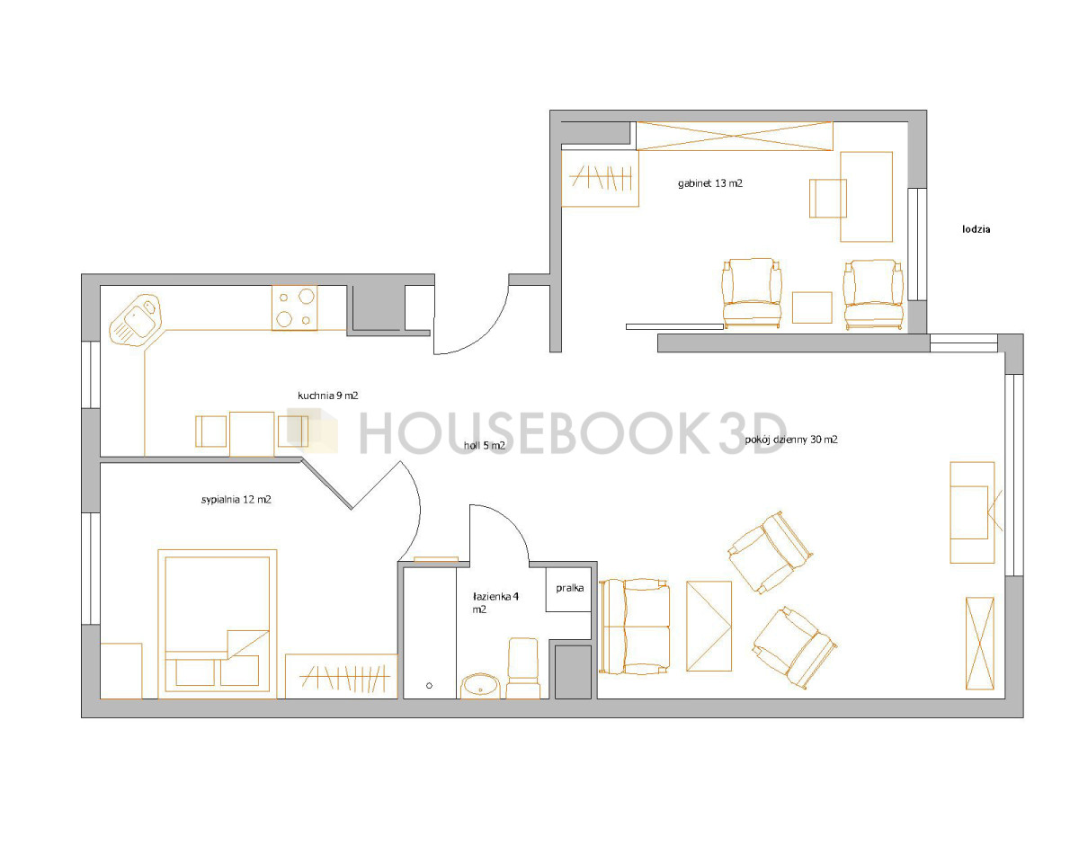Przestronne wnętrze (ok. 74 m²) z loggią - daje zarówno komfort mieszkania, jak i możliwość pracy w gabinecie.